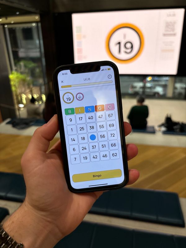 Scan the QR code at the venue, join the game on your phone, and wait for your host to call the numbers. Your card updates automatically in real time.